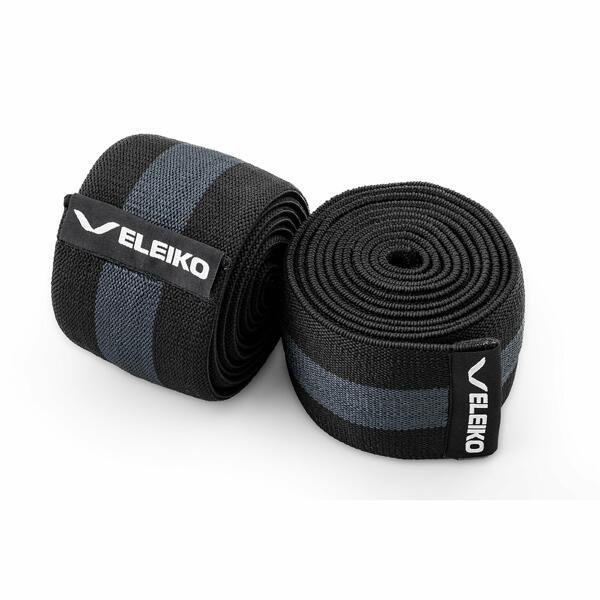 Eleiko knälindor är väldigt fasta och stödjande, samtidigt som de är elastiska. Lindorna är svarta med grå accentlinje och Eleiko-logo.