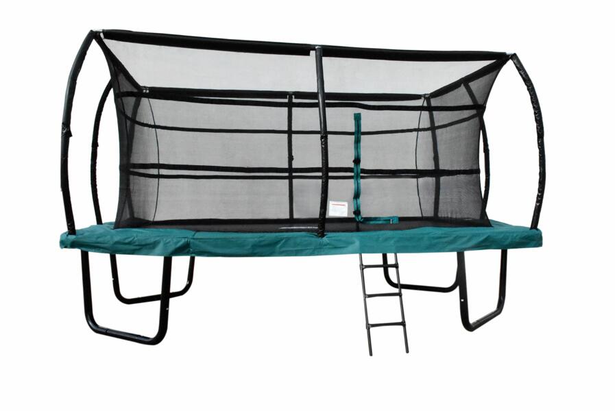 Komplett paket av rektangulär studsmatta på totalt 4,57 x 3m, säkerhetsnät och stege.