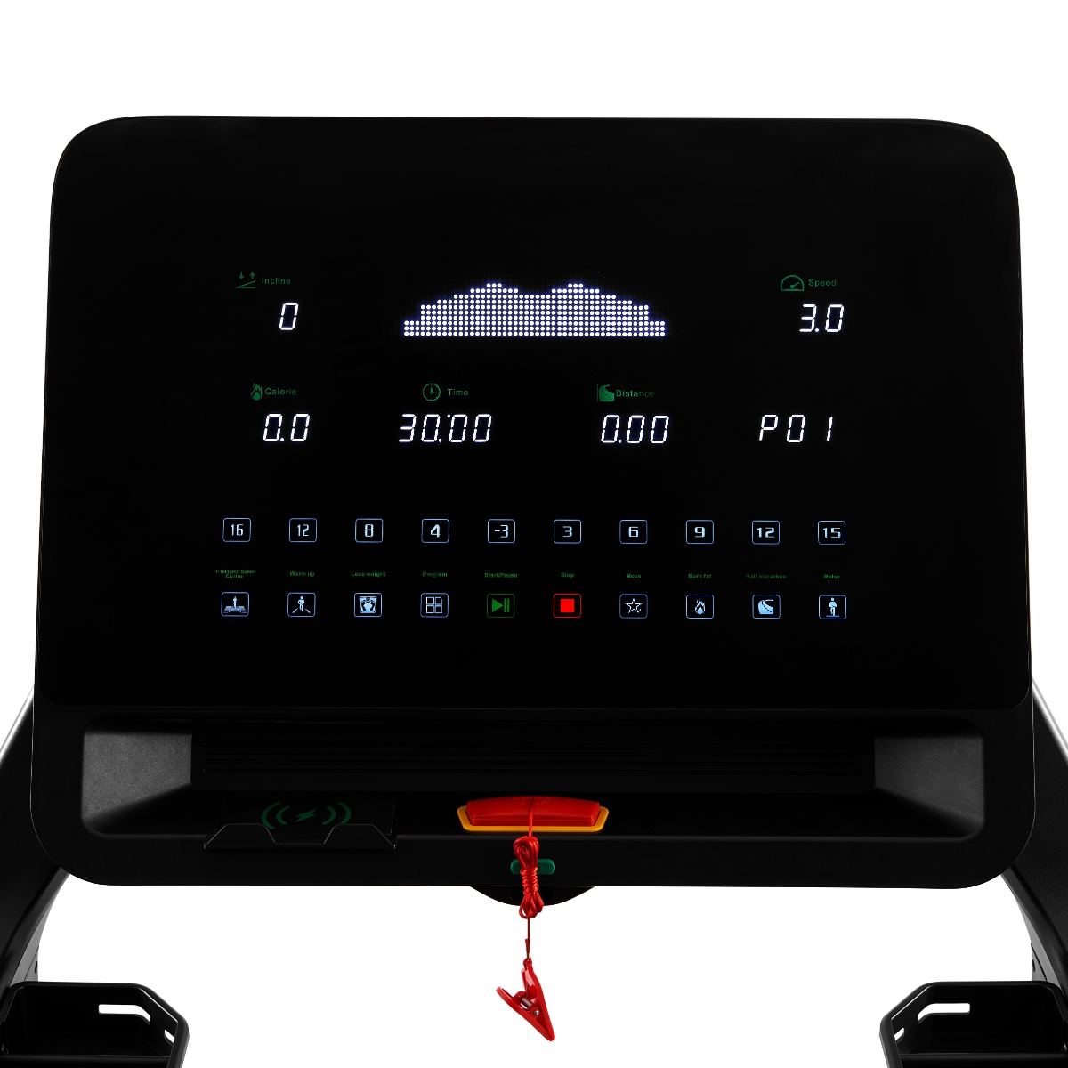 Display: 9.6" LED-display med vitt ljus och löpspår