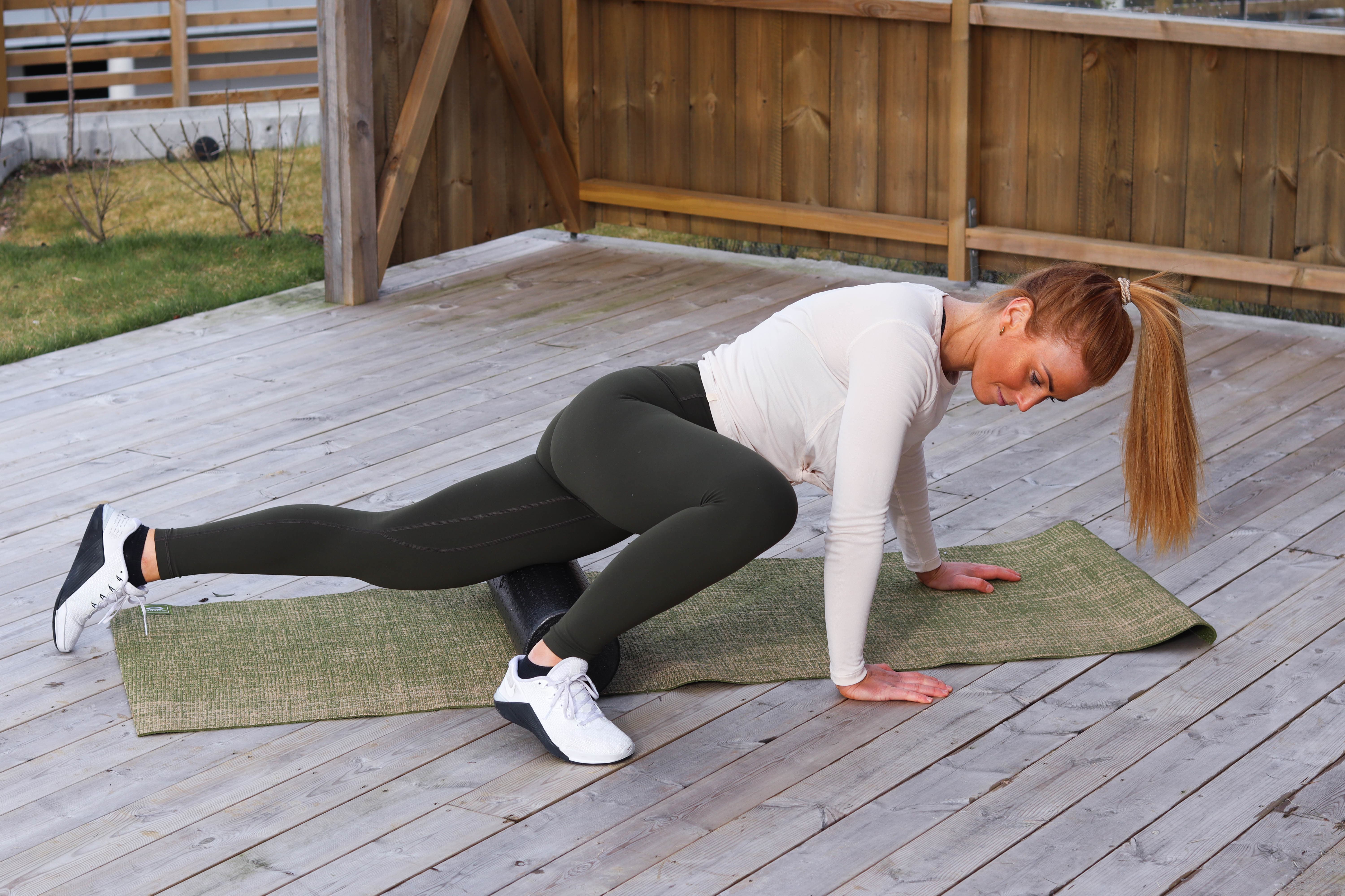 Dess släta yta gör den användbar för både foamrolling och som stöd i yoga och pilates. Den finns tillgänglig i en svart färg.