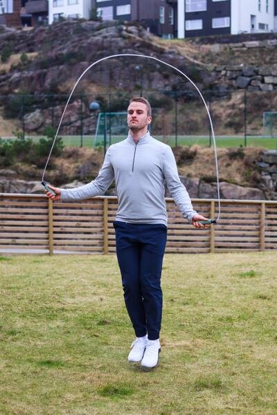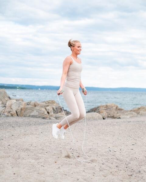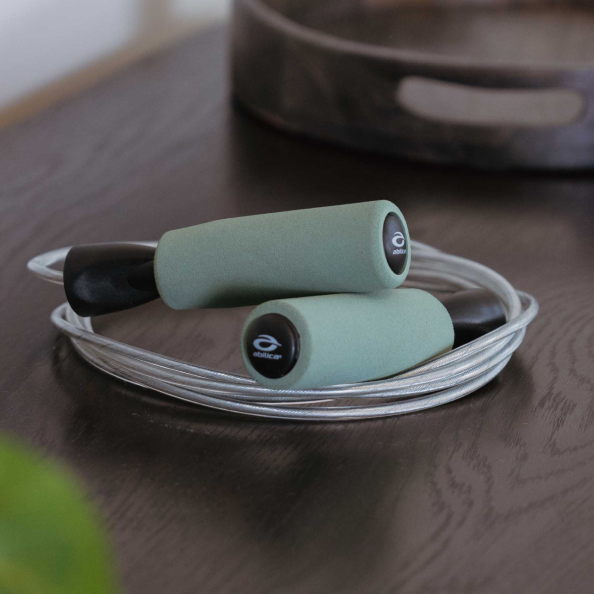 Abilica JumpUp levereras med en nylonbelagd tråd och ergonomiskt utformade handtag med en mjuk och bekväm textur. Detta ger ett bra grepp och förhindrar att handtagen glider ur händerna. Produkten har en justerbar längd så att du kan anpassa den till användarens höjd. OBS! För att ändra längd behöver man öppna handtaget och klippa repet för att justera.