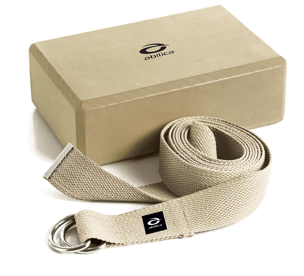 Paketet innehåller även en yogarem som är tillverkad av vävd bomull med solitt metallspänne. Remmen är 4 x 180 cm lång och fungerar som en förlängning av dina armar eller ben för att du ska kunna behärska även de mest krävande ställningarna. Yogaremmen är också ett utmärkt verktyg för stretching och töjning.