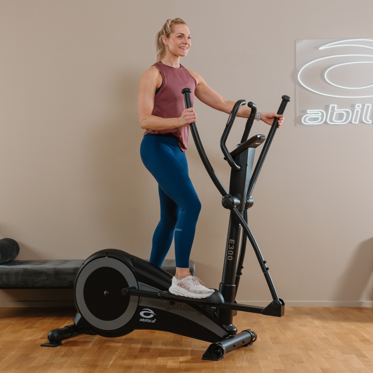 Abilica E 300 är en elliptisk maskin som passar den som vill ha en solid och mångsidig konditionsmaskin. Den har en bra steglängd på 40 cm, så att musklerna i lår och säte aktiveras väl under träning. Rejäl ramkonstruktion gör den stadig och stabil, även när du tränar med högt motstånd.