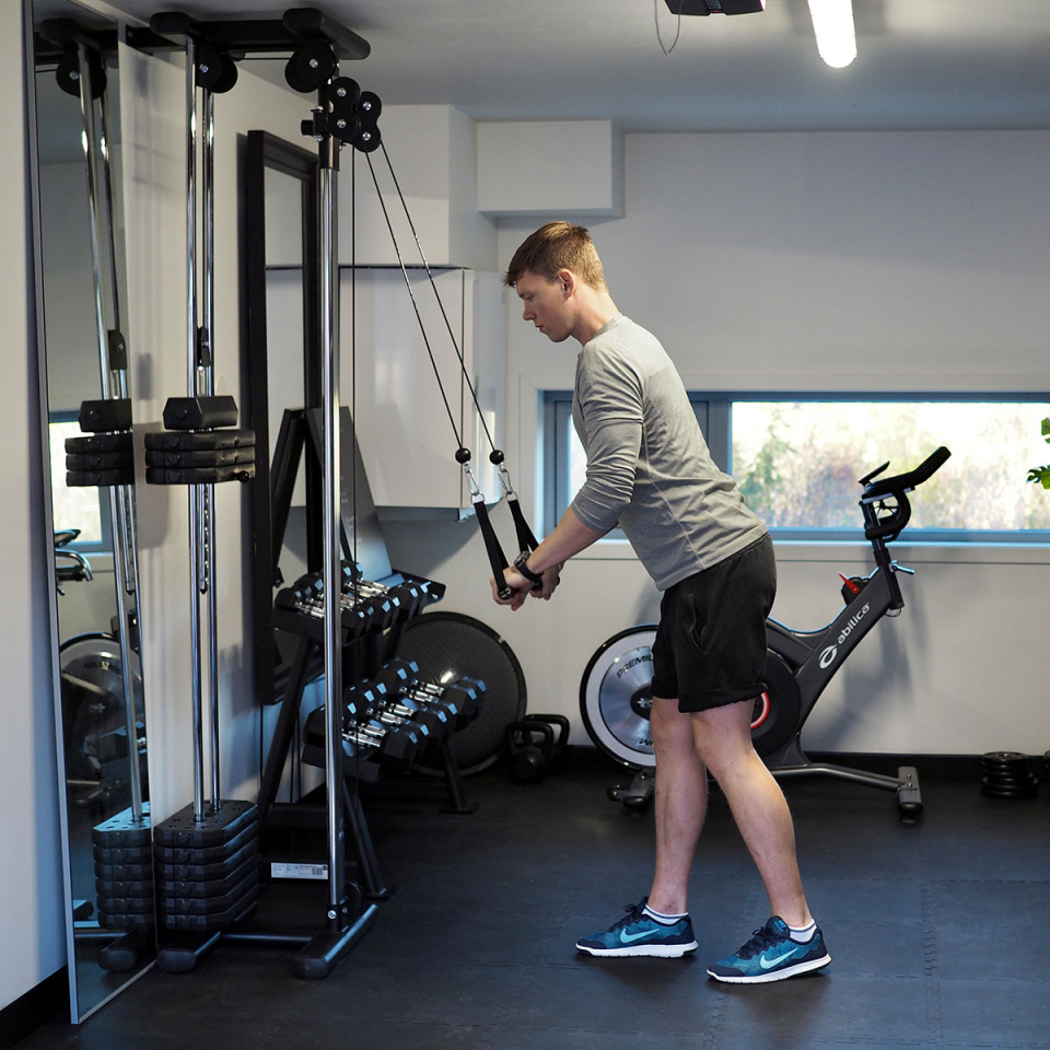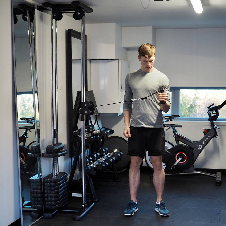 Fotband, tricepsrep, roddhandtag, latsdraghandtag och pull-up-stång kan köpas separat för ytterligare expansion av träningsutbudet.