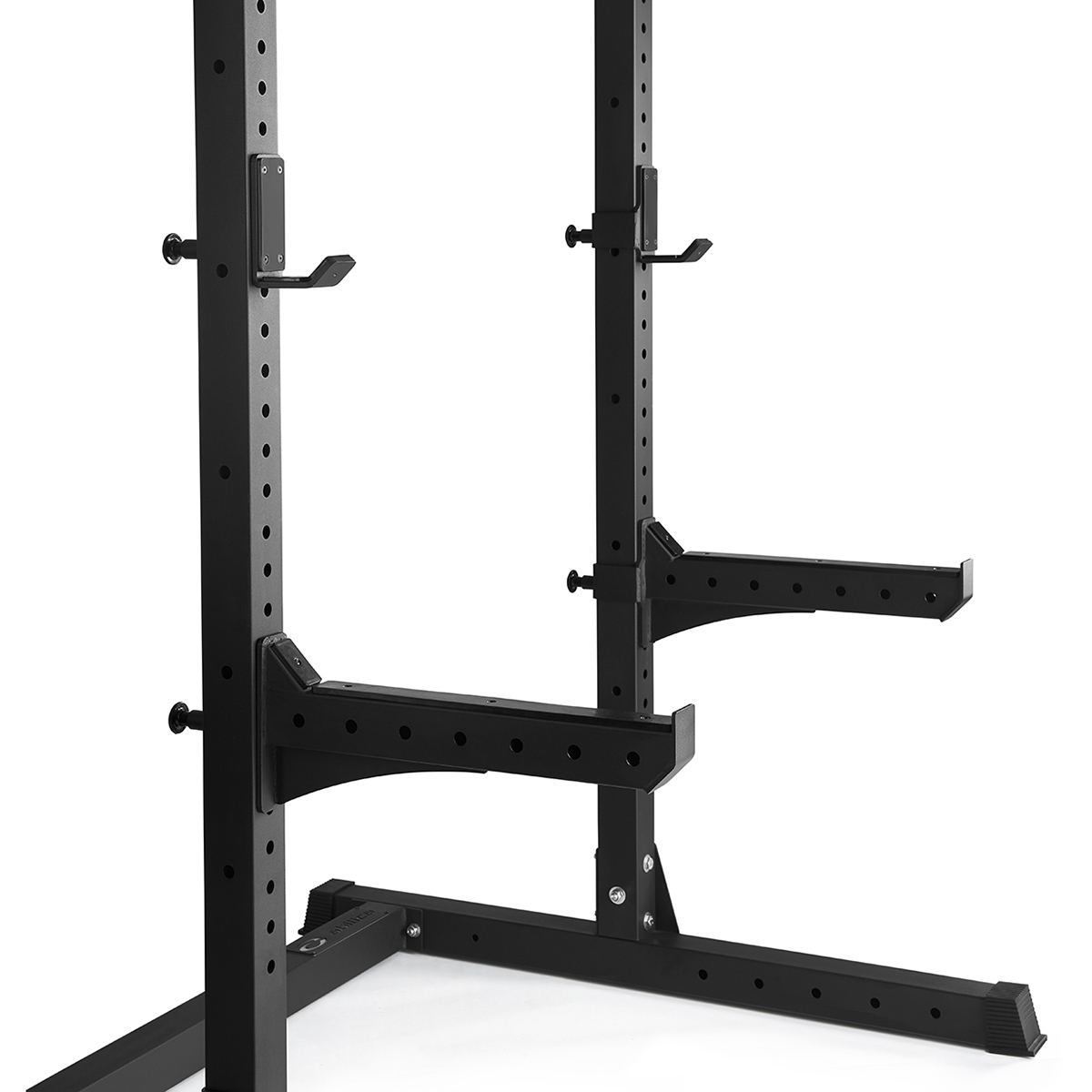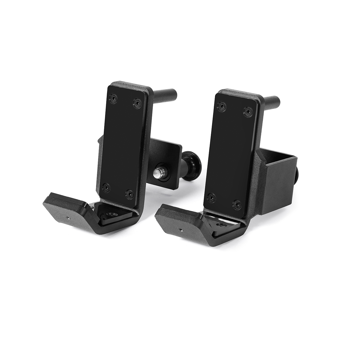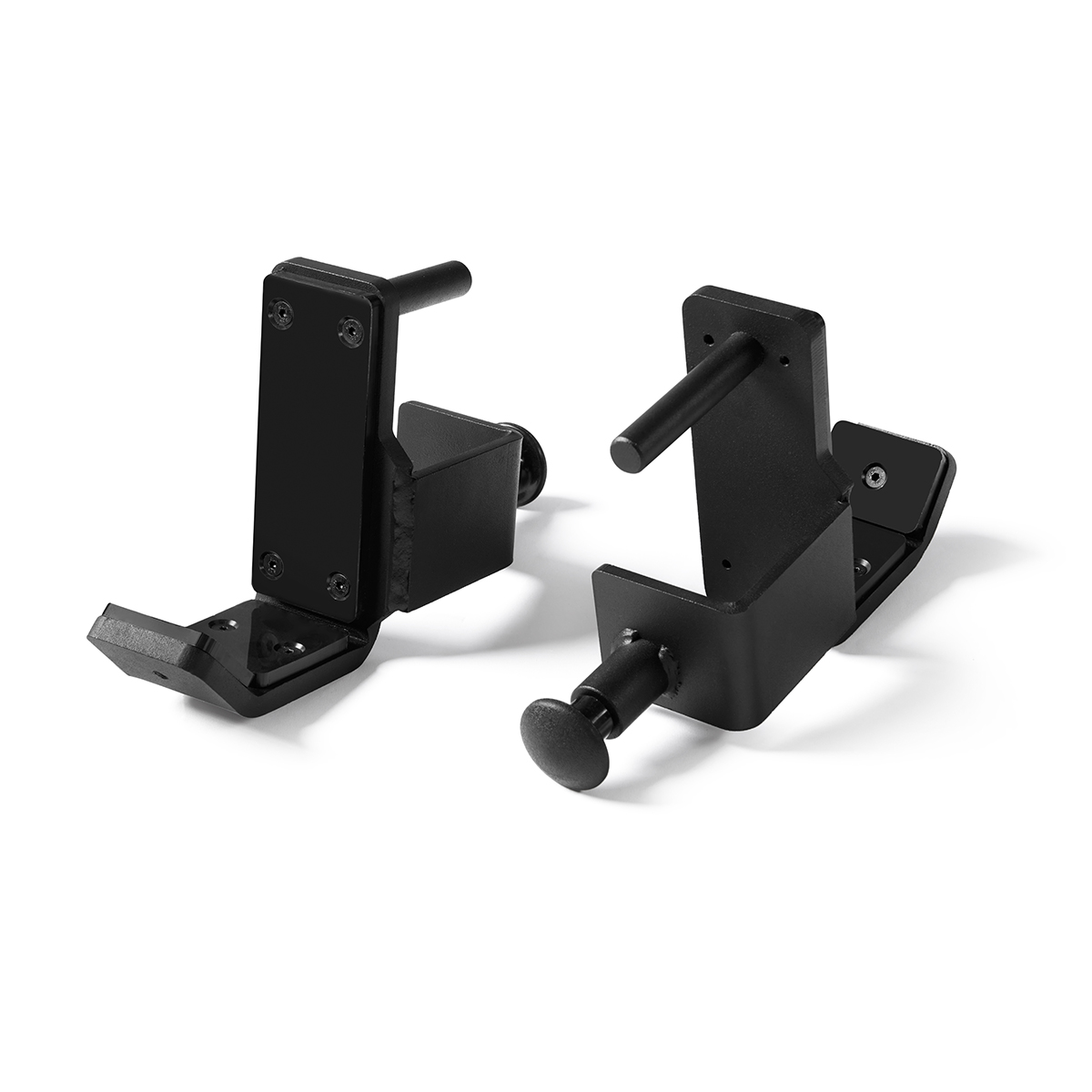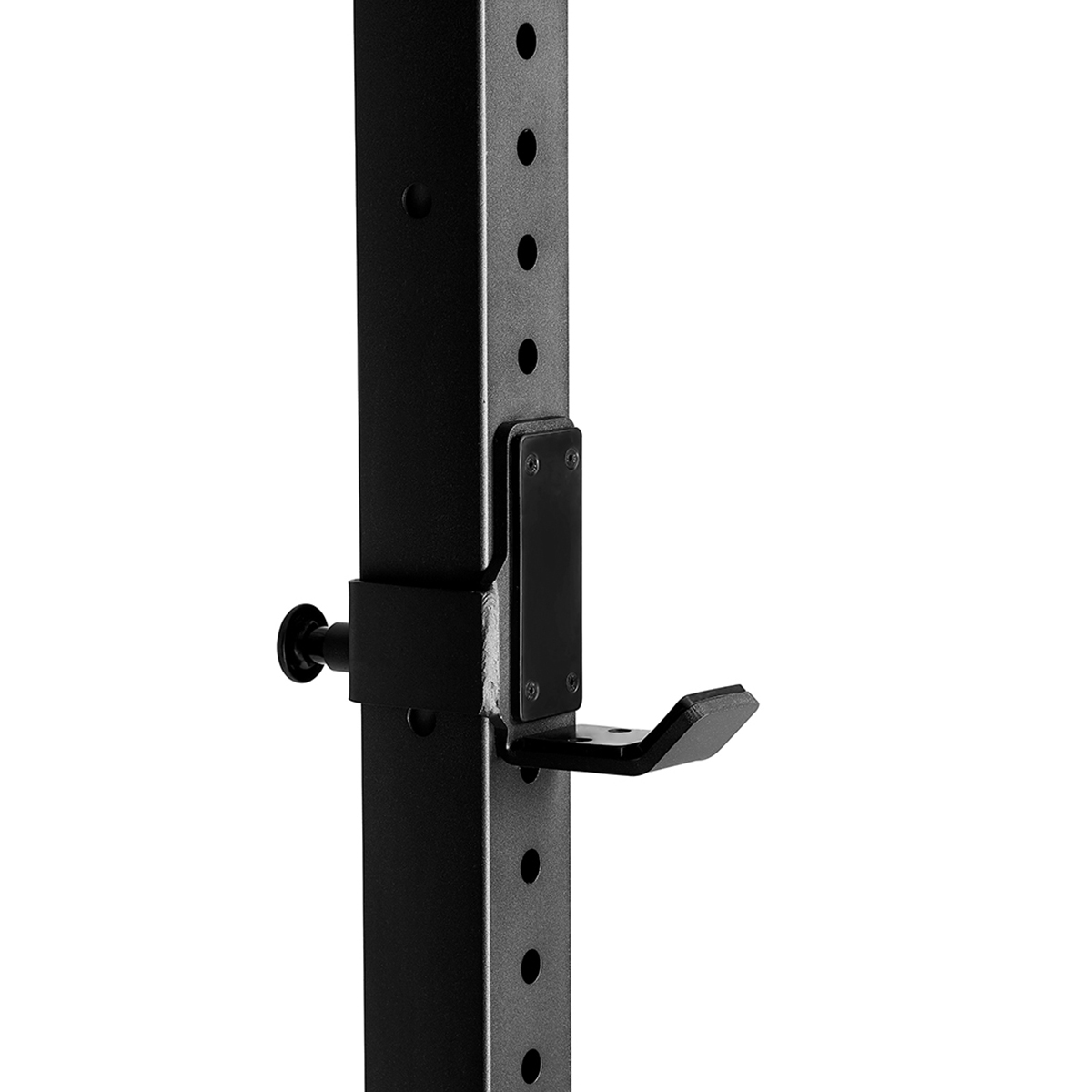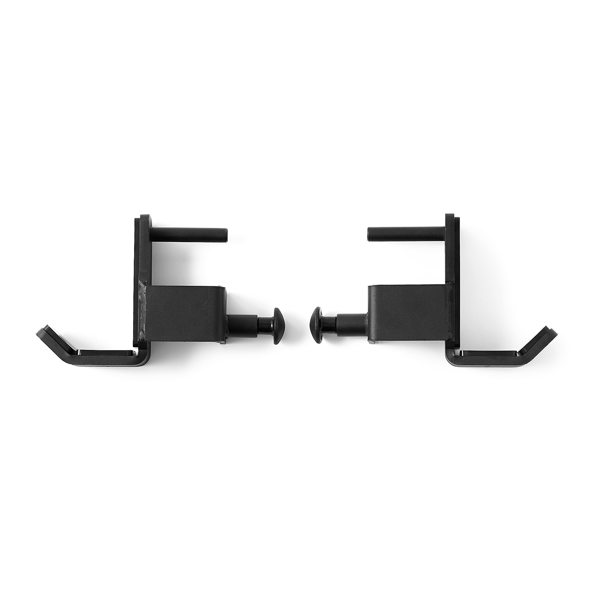 Detta är extrautrustning till racken som gör att du enkelt kan växla mellan övningar utan att behöva flytta racken. T.ex. förinställd höjd för bänkpress och förinställd höjd för knäböj. Den främre bågen har en längd på 4 cm med en bra vinkel för optimal säkerhet. Stället har även 3-punkts heavy-duty UHMW-skydd i 6,5 mm tjocklek som täcker hela stället där det bakre skyddet har en längd på 14,5 cm. Detta ger en bra ljuddämpning samt gör det enklare för dig att lägga stången i racket utan att slå skivstången i själva racket. Levereras med slide-and-twist-funktion med fjäderbelastat låsstift så att du enkelt kan justera höjden snabbt, samt låsa dem för att undvika onödig rörelse i hållaren. Säljs som ett par.
