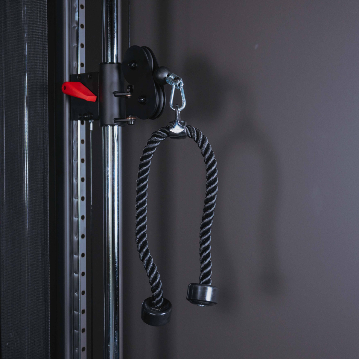 Abilica PressDown Rope har utvecklats för hemmaträning och kommersiellt bruk och är perfekt för dig som vill ha fler alternativ för drag- och pressövningar till ditt multigym. Repet är tillverkat av slitstarkt nylon och har en längd på 95 cm med en handtagsdiameter på 26 mm. Ändarna är gjorda av hårt gummi och ger dig en bra slutpunkt för händerna när repetitionerna börjar bli tunga. Abilica PressDown Rope lämpar sig mycket bra för övningar som tricepspress, high pull, biceps curl och face-pulls utöver ett antal enarmsövningar. Karbinkrok ingår ej.