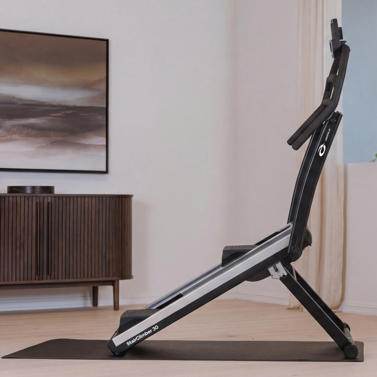 Abilica StairClimber 30 är en hopfällbar trappmaskin för dig som vill ha ett effektivt träningspass för kondition, fettförbränning, rumpa och lår i ditt eget hem. Den kan användas i rum med normal takhöjd och är enkel att fälla ihop när den inte används.