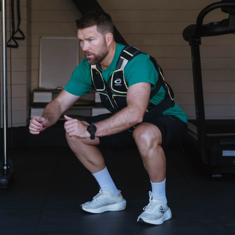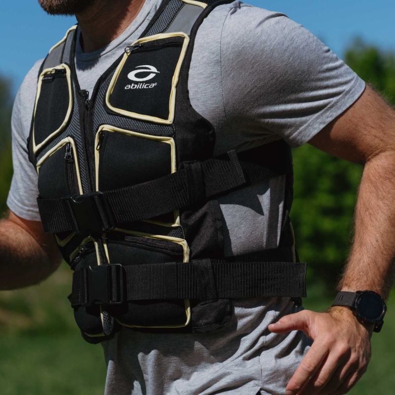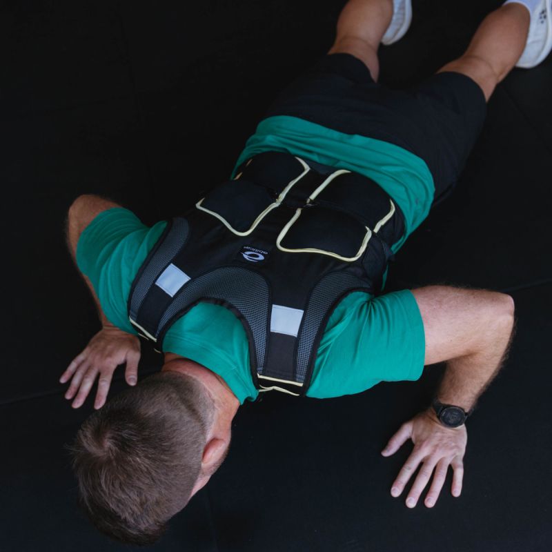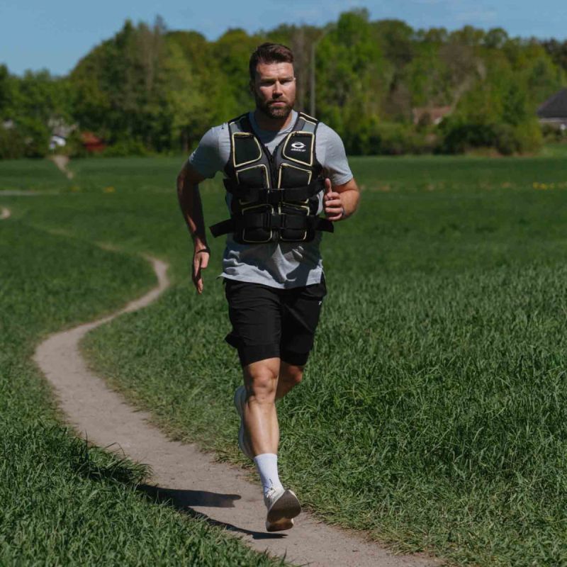 Den här viktvästen är justerbar från 1,25 kg till 10 kg och har två extra fickor för att förvara pengar, nycklar och andra småsaker. De två kraftiga spännena ger bra justeringsmöjligheter och västen är gjord av mjuk neopren.