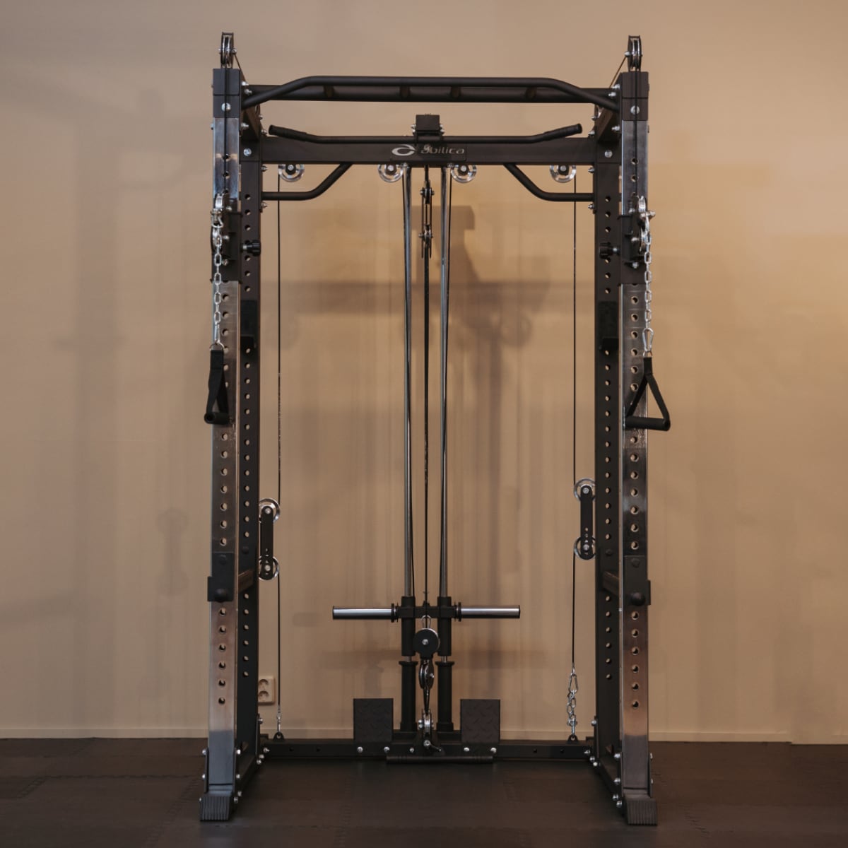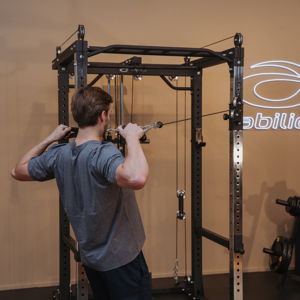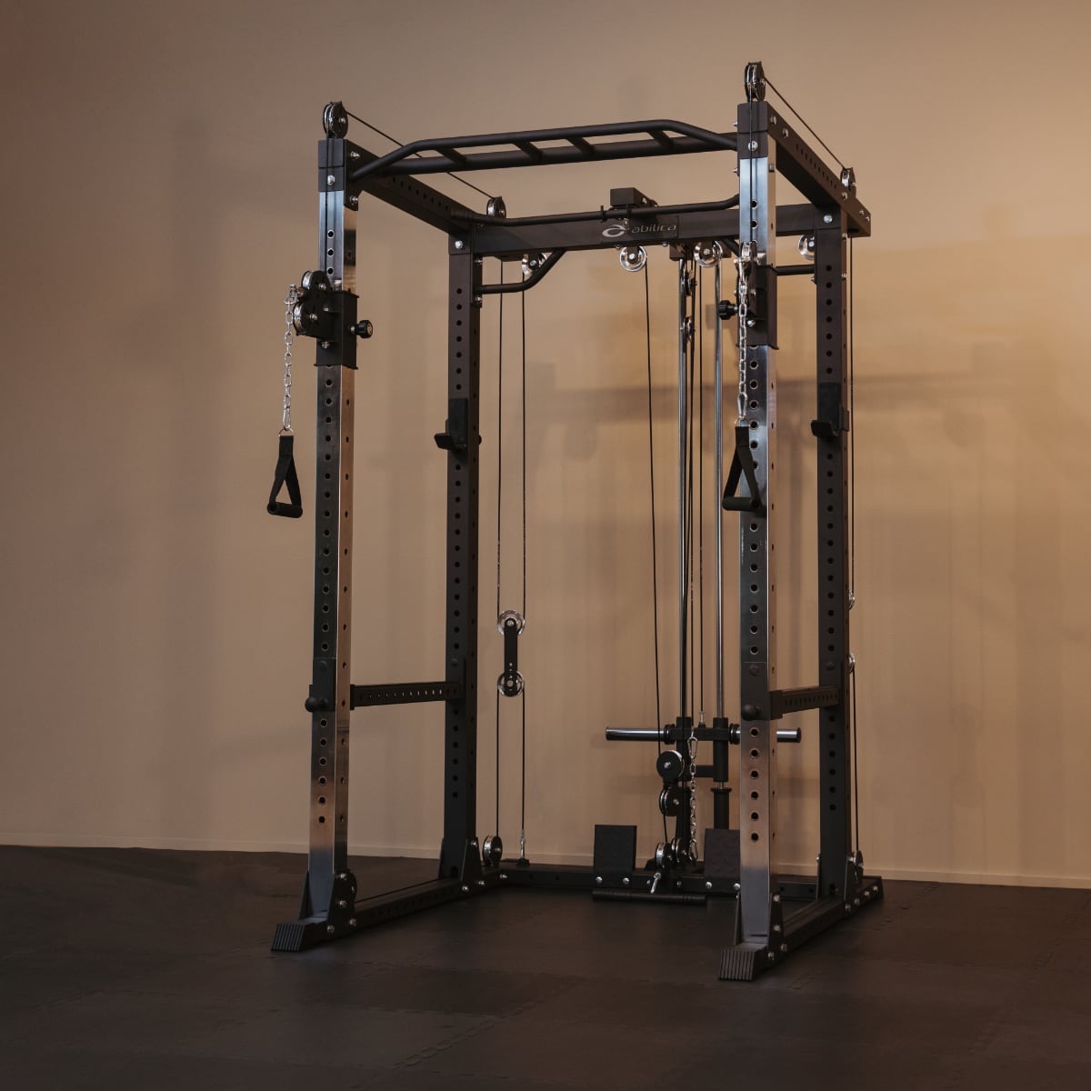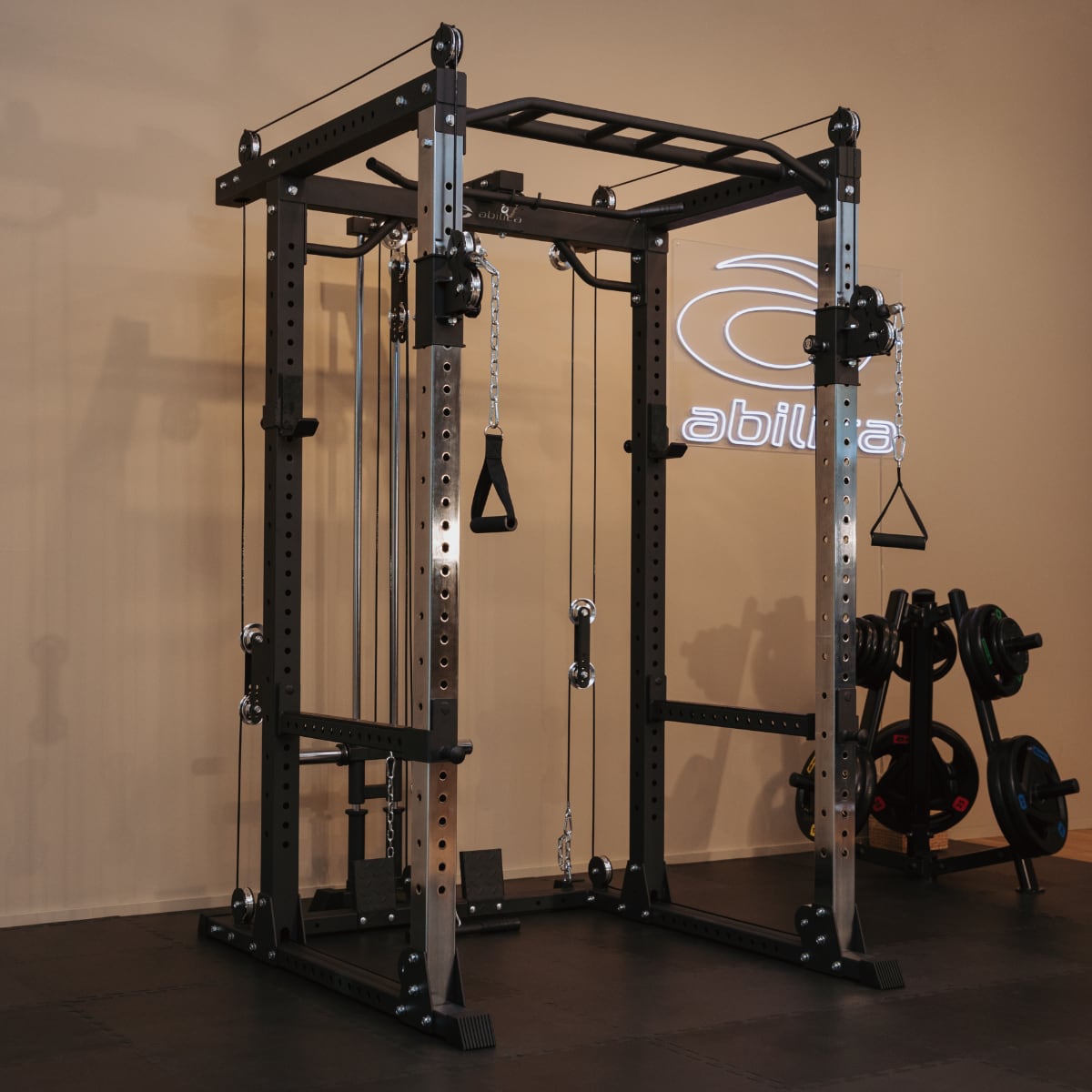 Abilica PR 550 är en kraftig rack med horisontell och justerbar vertikal kabelhissar på de främre stolparna för dig som vill ha den ultimata power rack för ditt hemmagym!