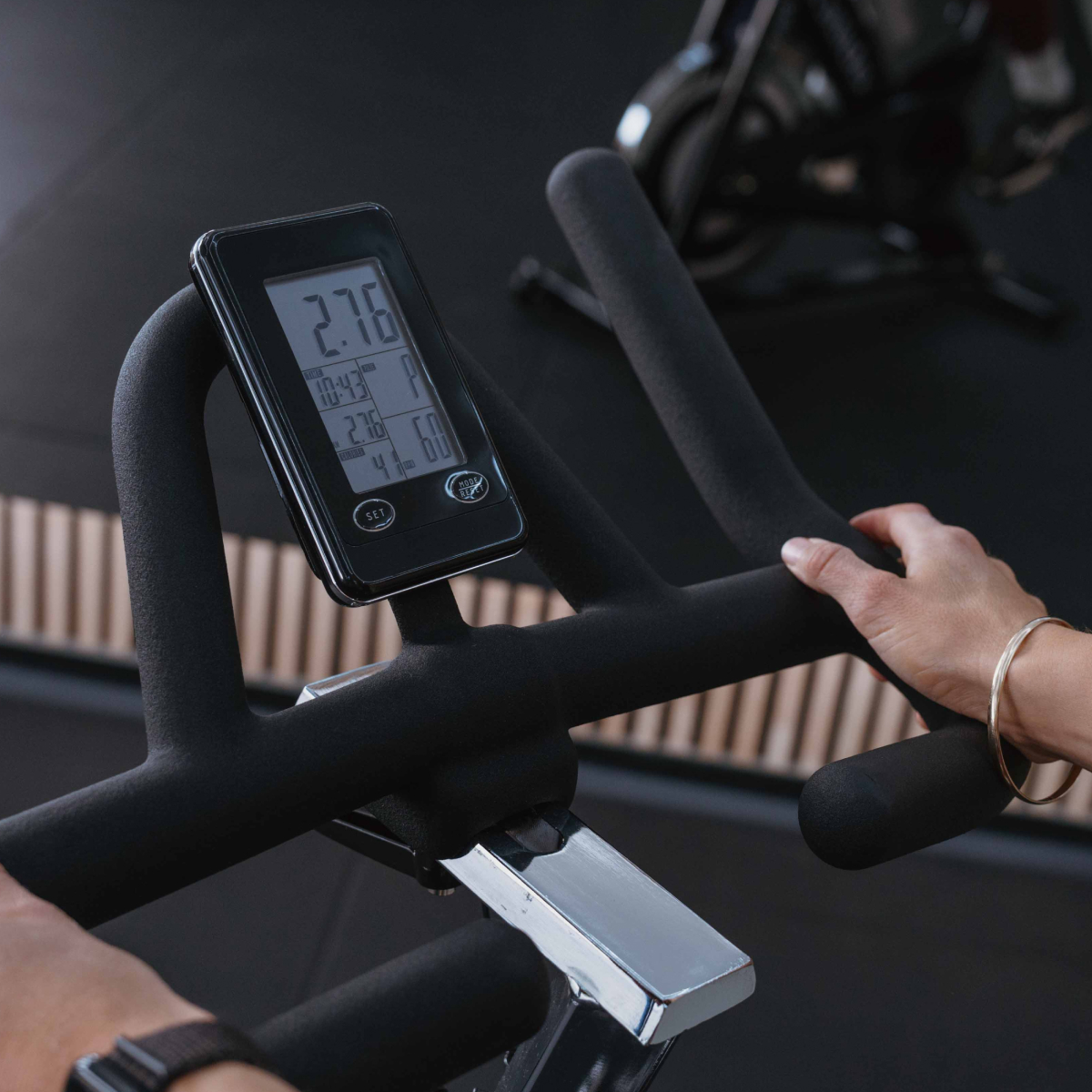 Dessutom är denna spinningcykel utrustad med kombipedaler, vilket ger en skön känsla oavsett om du använder cykelskor eller vanliga skor. Den medföljande displayen visar viktig träningsinformation såsom RPM, tid, kcal, distans, hastighet och puls (pulsmätare säljs separat).