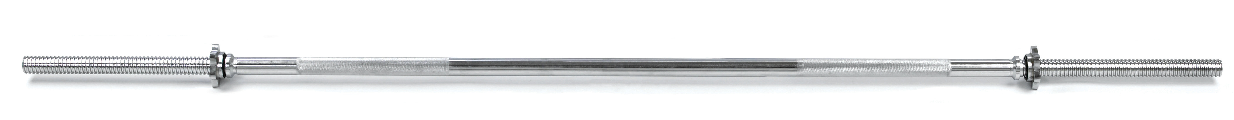 Storleken påverkar främst vikten, eftersom den här stången endast väger 7,6 kg istället för 20 kg. Stångens dimensioner innebär också att den passar bäst med s.k. skolvikter, eftersom stångändarna har en diameter på 25 mm istället för 50 mm. Stången levereras med lås för extra säkerhet.