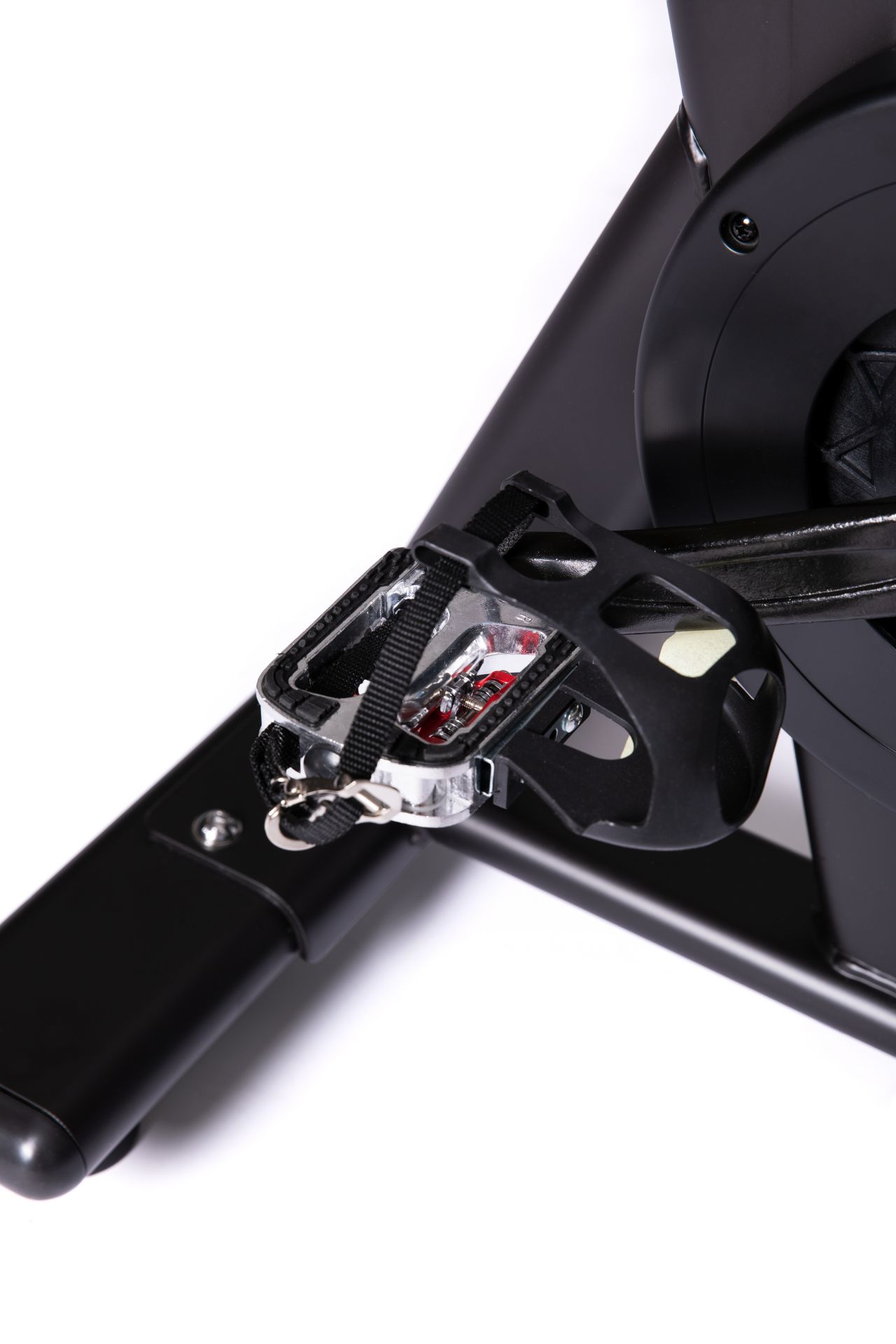 Den är även utrustad med justeringsmöjligheter både horisontellt och vertikalt på både sätet och styret, vilket gör att du kan anpassa cykeln efter dina specifika behov. Med SPD-pedaler kan du använda dina egna cykelskor och få ut maximalt av pedalerna.