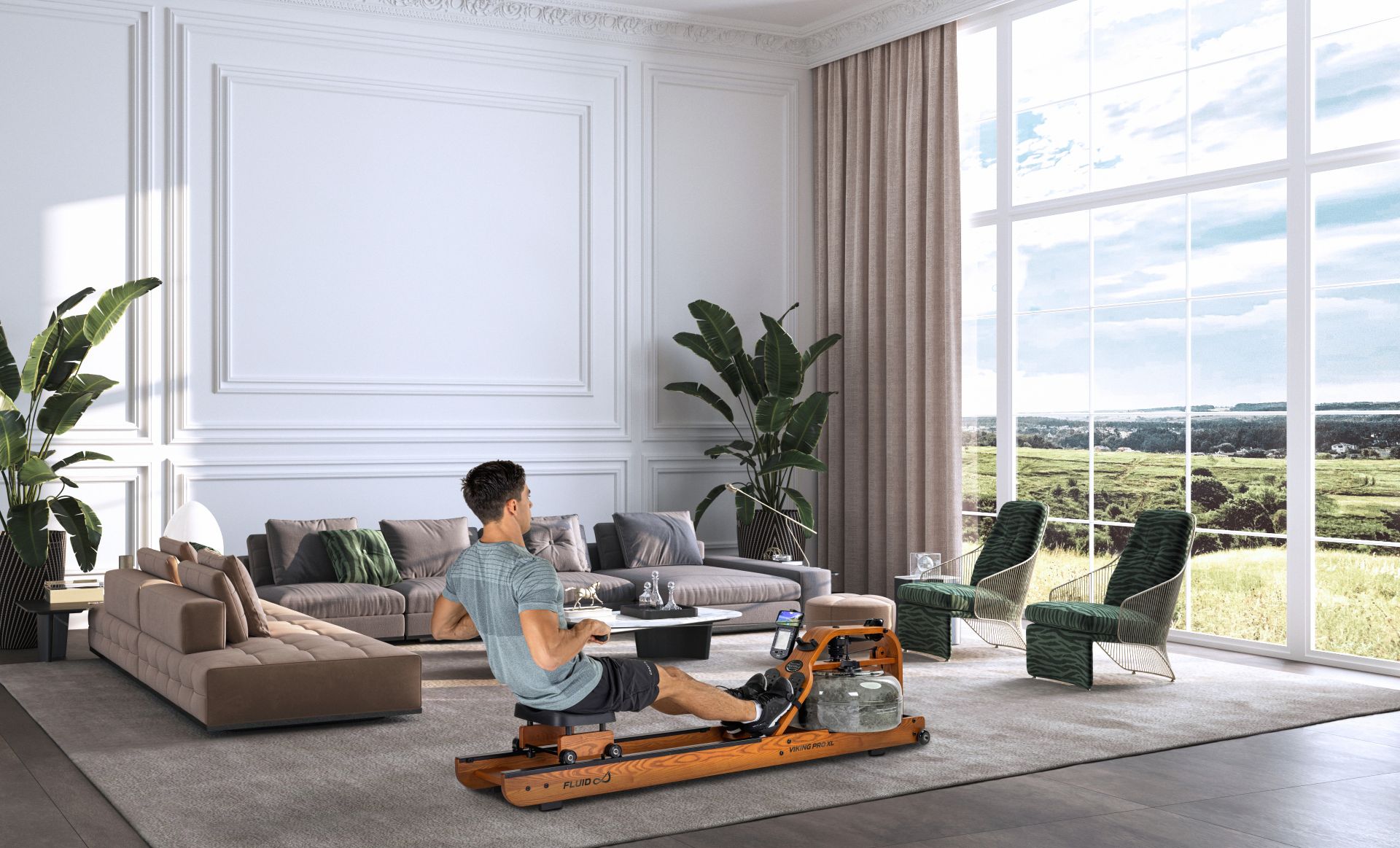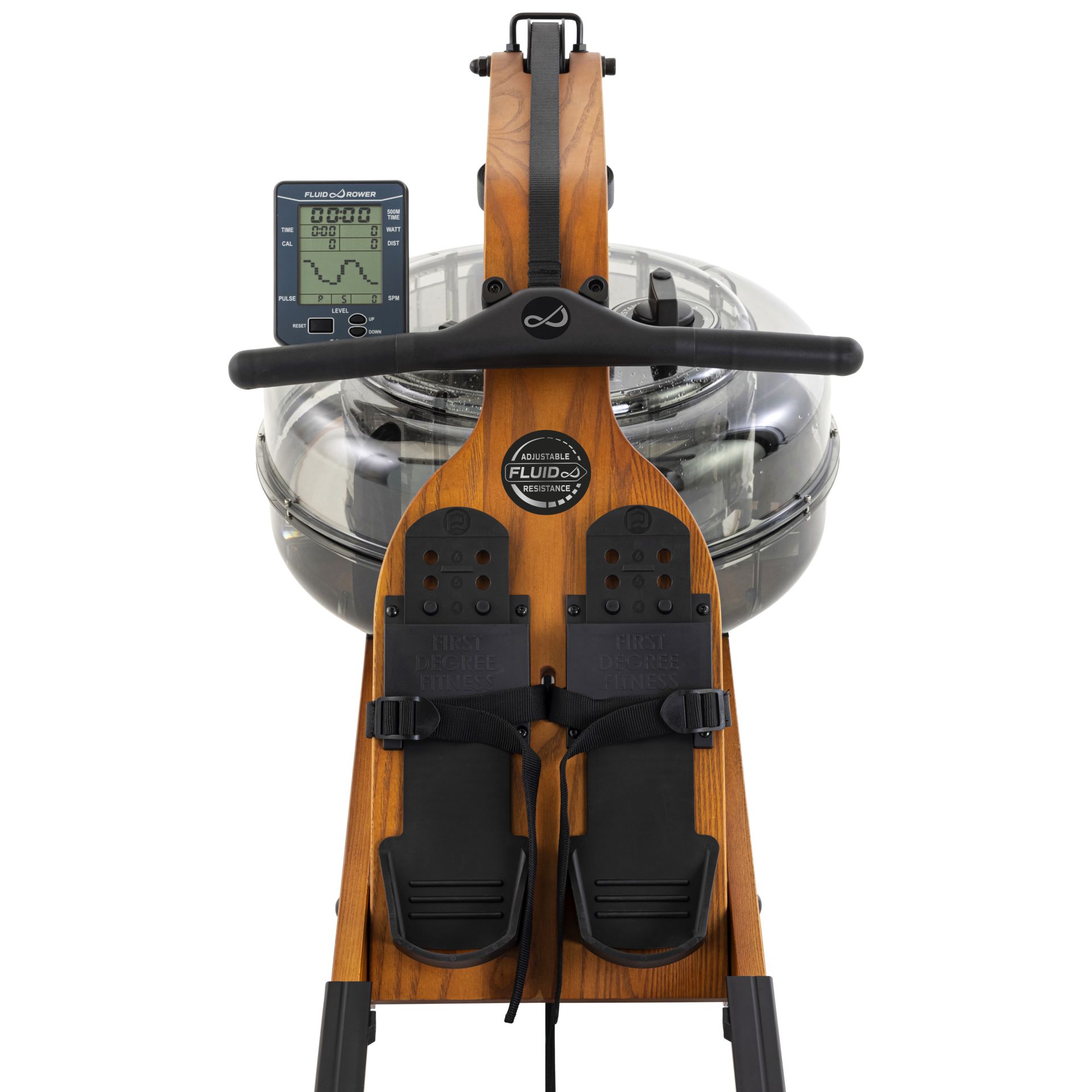 Upplev premiumkvalitet med en Fluid Rower Viking Pro XL, en professionell roddmaskin tillverkad av amerikansk ask. Med sin lyxiga design i gyllene ek passar den in i alla hem, företag och fitnesscenter.