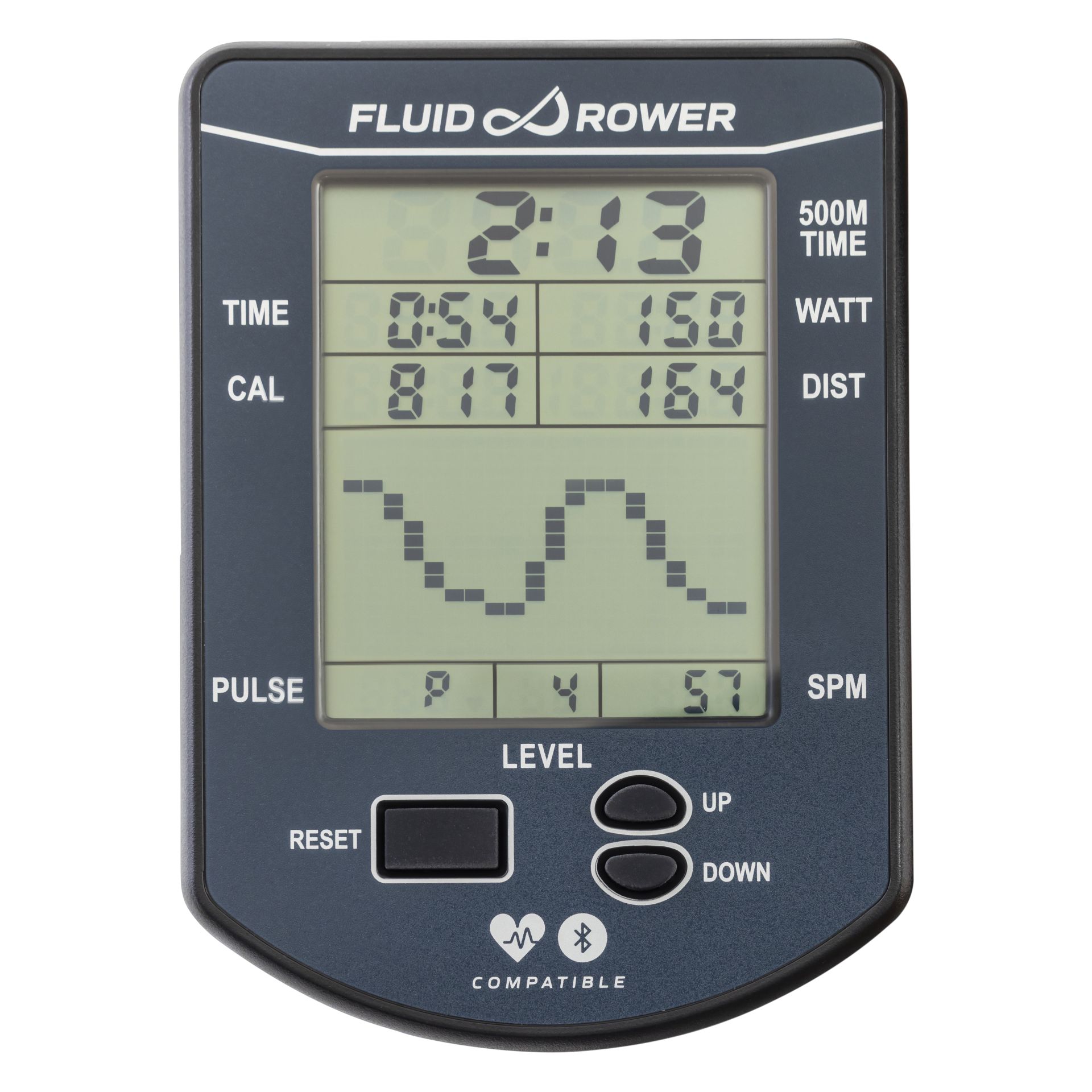 Viking Pro V ger en realistisk roddupplevelse med justerbart motstånd och en patenterad vattentank som erbjuder fem olika motståndsnivåer. Det ergonomiska handtaget, den mjuka sitsen och den tysta dubbla skenan ger maximal komfort under träningspasset. Den inbyggda Fluid Bluetooth-monitorn ger dig realtidsdata om ditt träningspass, inklusive tid, watt, kalorier och antal roddar. Monitorn låter dig också ansluta till populära fitnessappar via Bluetooth.
