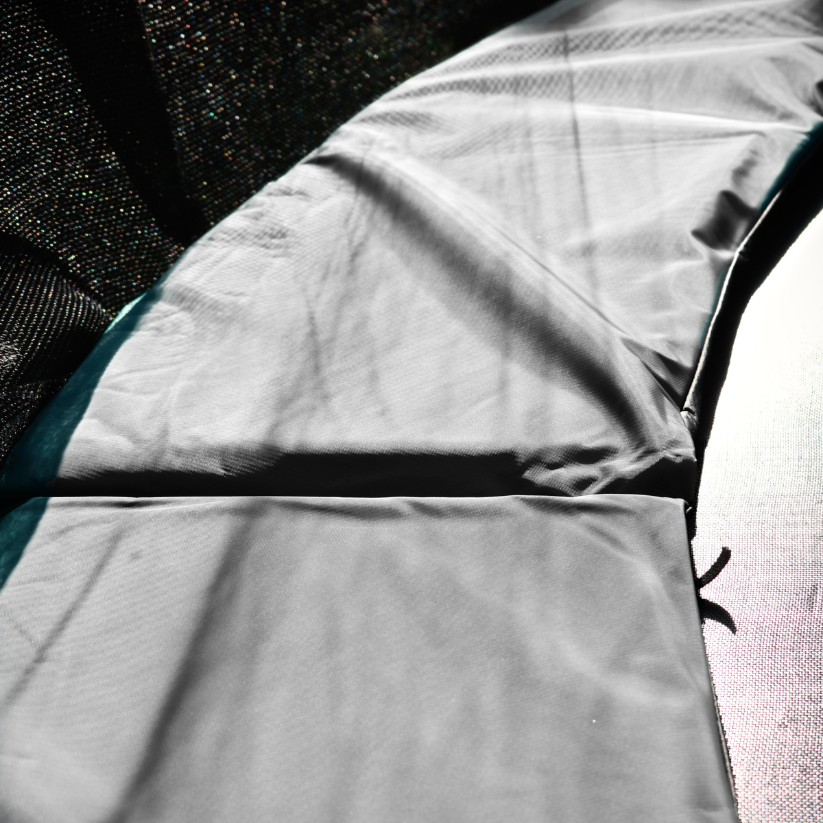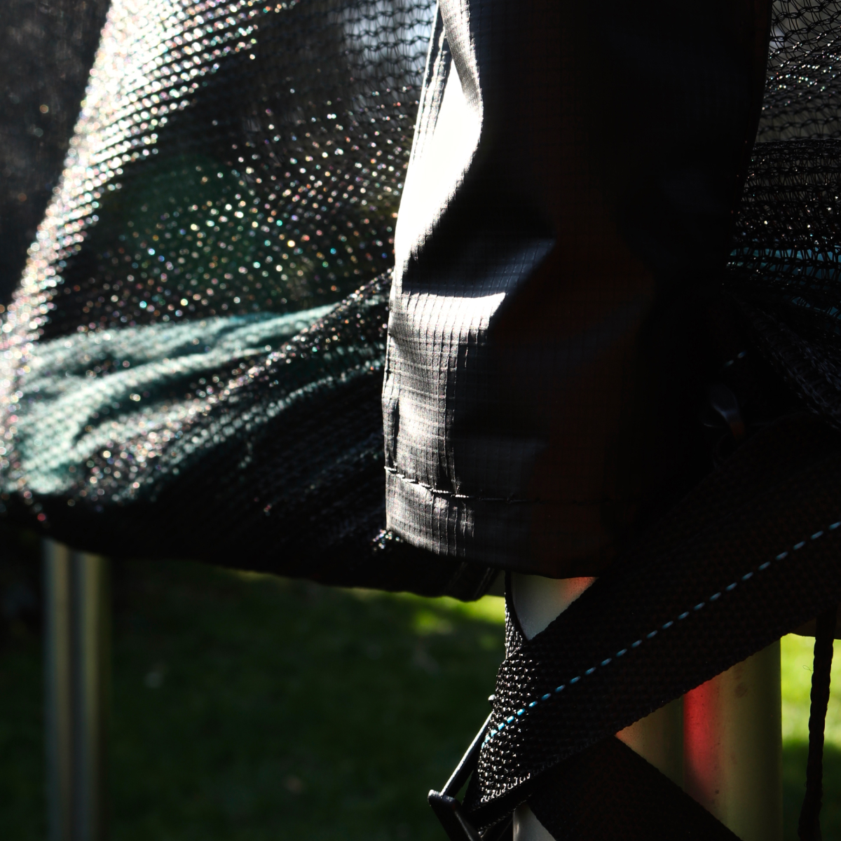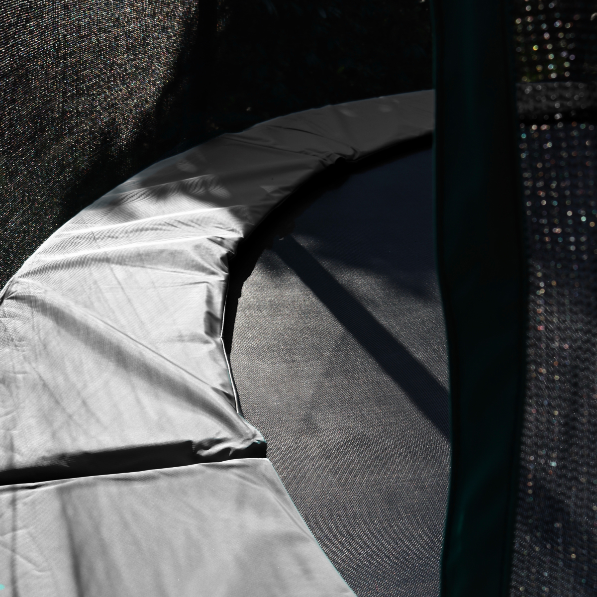 Jumpmaster Flexi Studsmatta är byggd med en robust ram och materialval anpassade för nordiska förhållanden. Den 36 cm breda och 2,5 cm tjocka kantskyddspolstringen täcker fjädrarna effektivt och skyddar mot stötar vid hoppning och avstigning. Polstringen är tillverkad i slitstark, väderbeständig PVC som tål sol, regn och vind över tid.