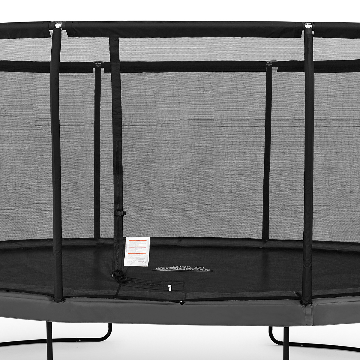 Jumpmaster Premium Fly Oval levereras med Pro säkerhetsnät, utvecklat för maximal trygghet och lång livslängd. Nätet är UV- och rivbeständigt, finmaskigt och konstruerat för att minska risken för att fingrar eller tår fastnar.