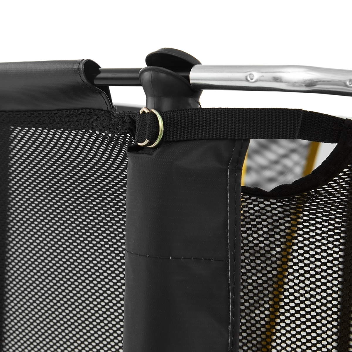 Denna studsmatta utmärker sig med sitt patenterade kopplingssystem mellan ramen och nätet, vilket ger: