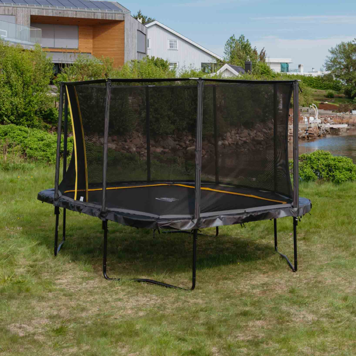 Premium Fly Rektangulär studsmatta 4,3x3m inkl. skyddsnät