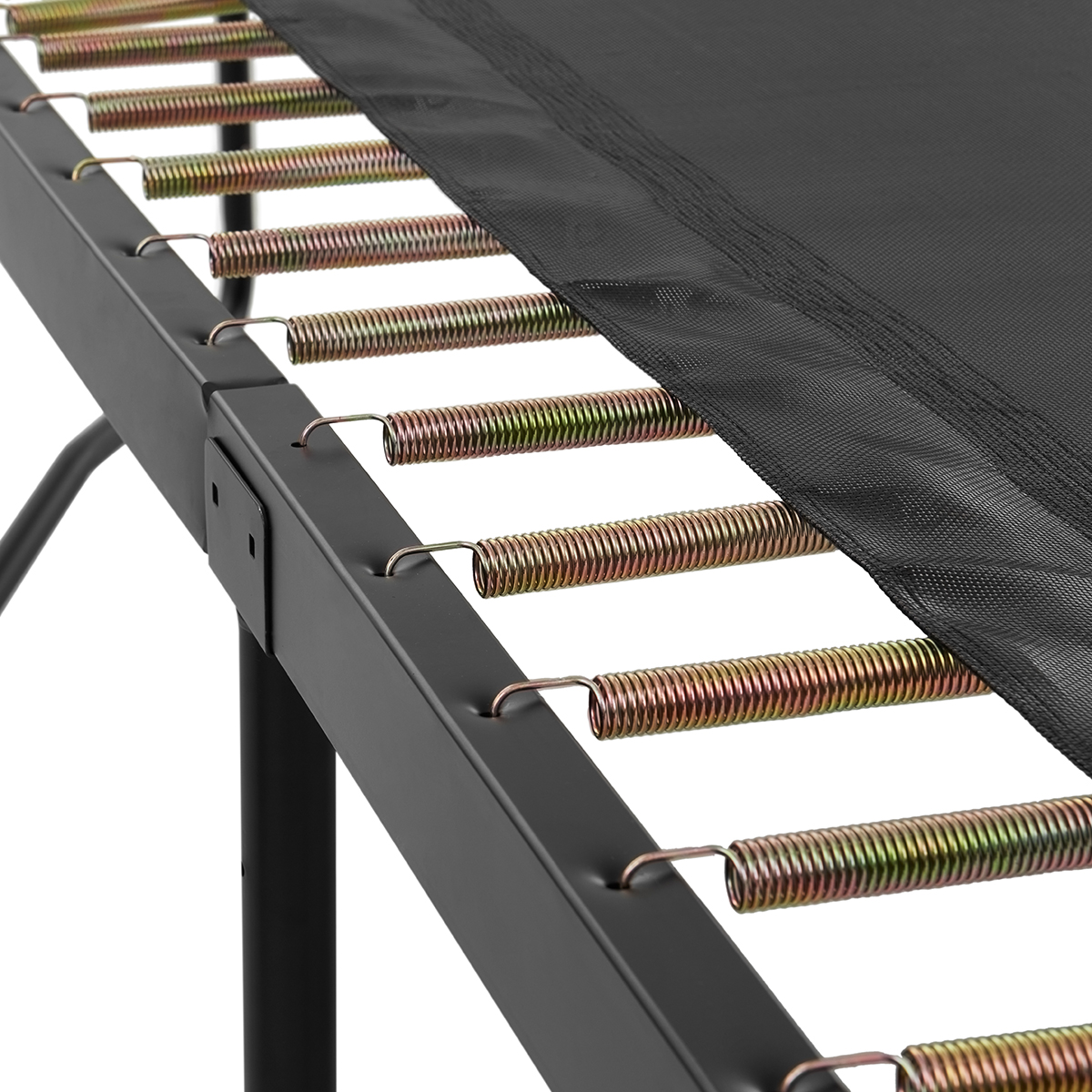 Denna studsmatta är utrustad med 92 specialdesignade fjädrar och en hoppmatta med hög luftgenomströmning. Detta ger: