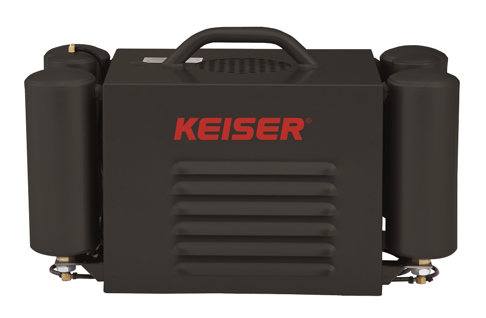 Kompressorn är tyst och kompakt. Den har en inbyggd luft avfuktare som ger en ren och torr luft för upp till 6 st. Keiser-maskiner.