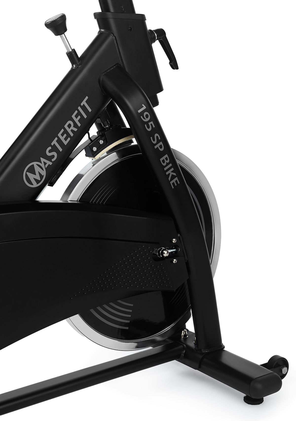 Masterfit 195 SP Spinningcykel kan användas till allt från korta och hårda intervaller till lugna långpass. Spinningcykeln har ett svänghjul på 20 kg som garanterar hög motståndsnivå och möjlighet att köra till exempel styrketräning med tunga tramptag.