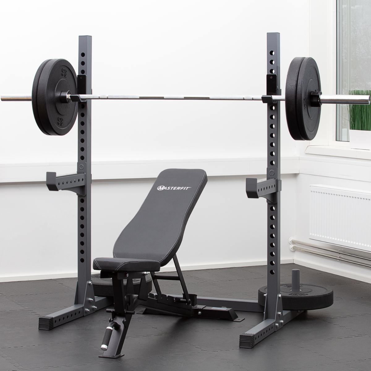 Masterfit 200 Squat Rack är produkten för dig som vill ha ett robust knäböjsstativ för hemmabruk.