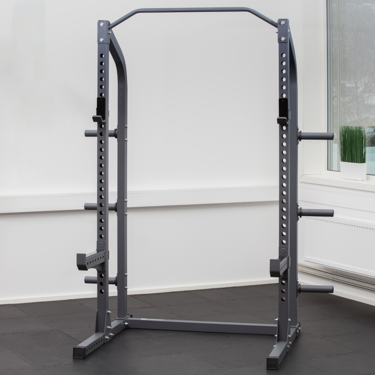 Masterfit 300 Half Rack är perfekt för dig som vill ha ett gediget och platsbesparande half rack för hemmabruk med förvaringsstift för viktskivor.