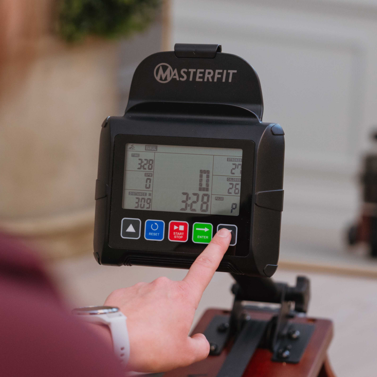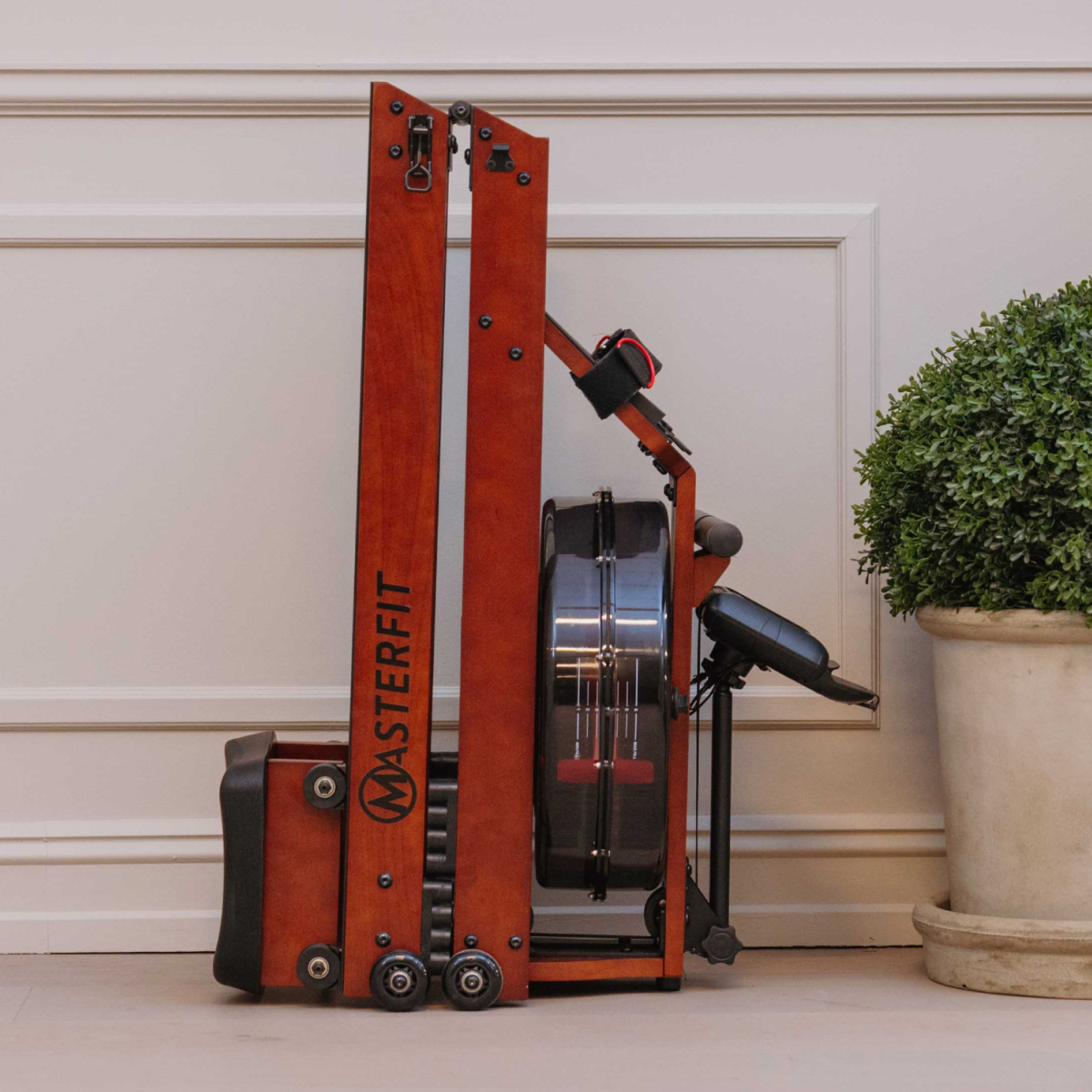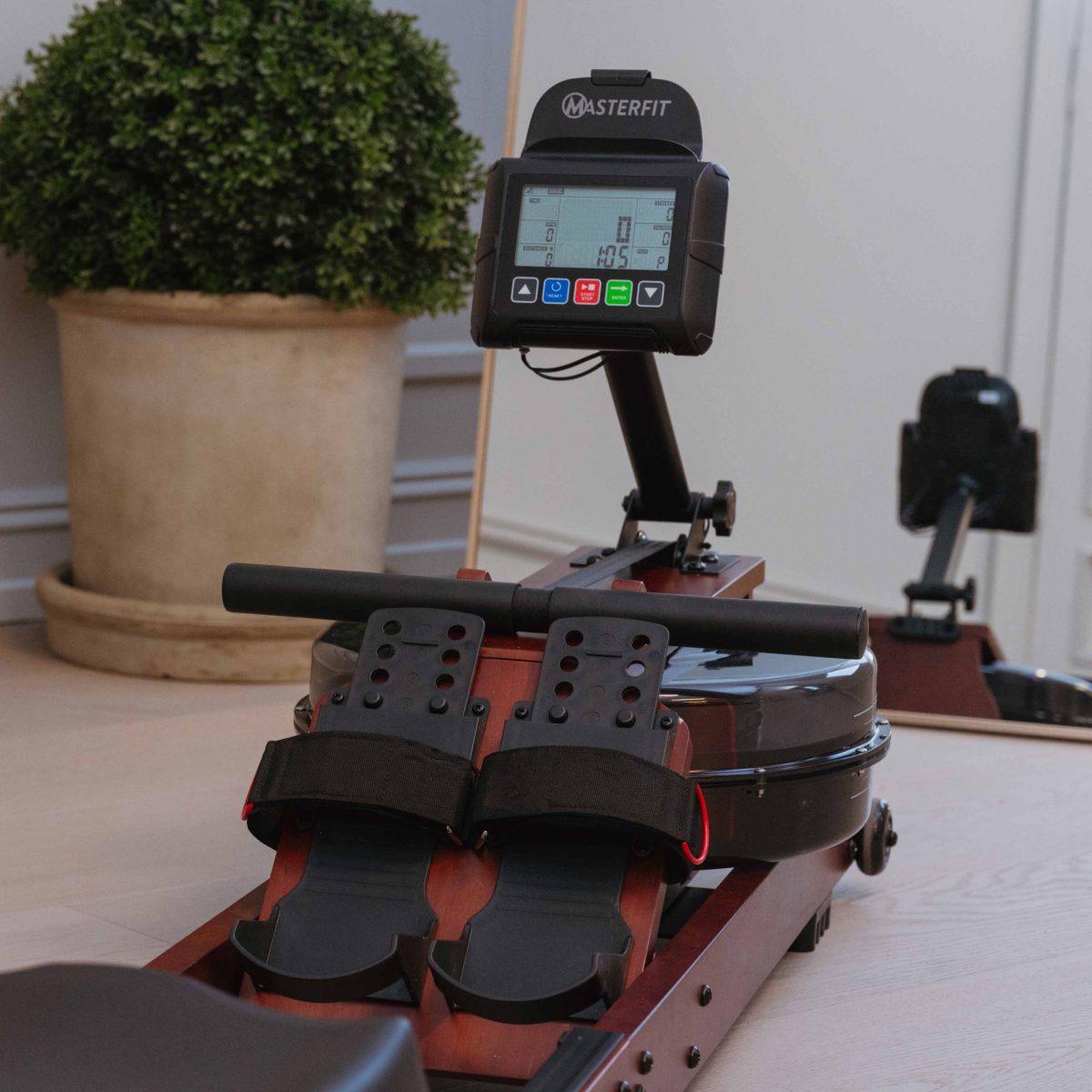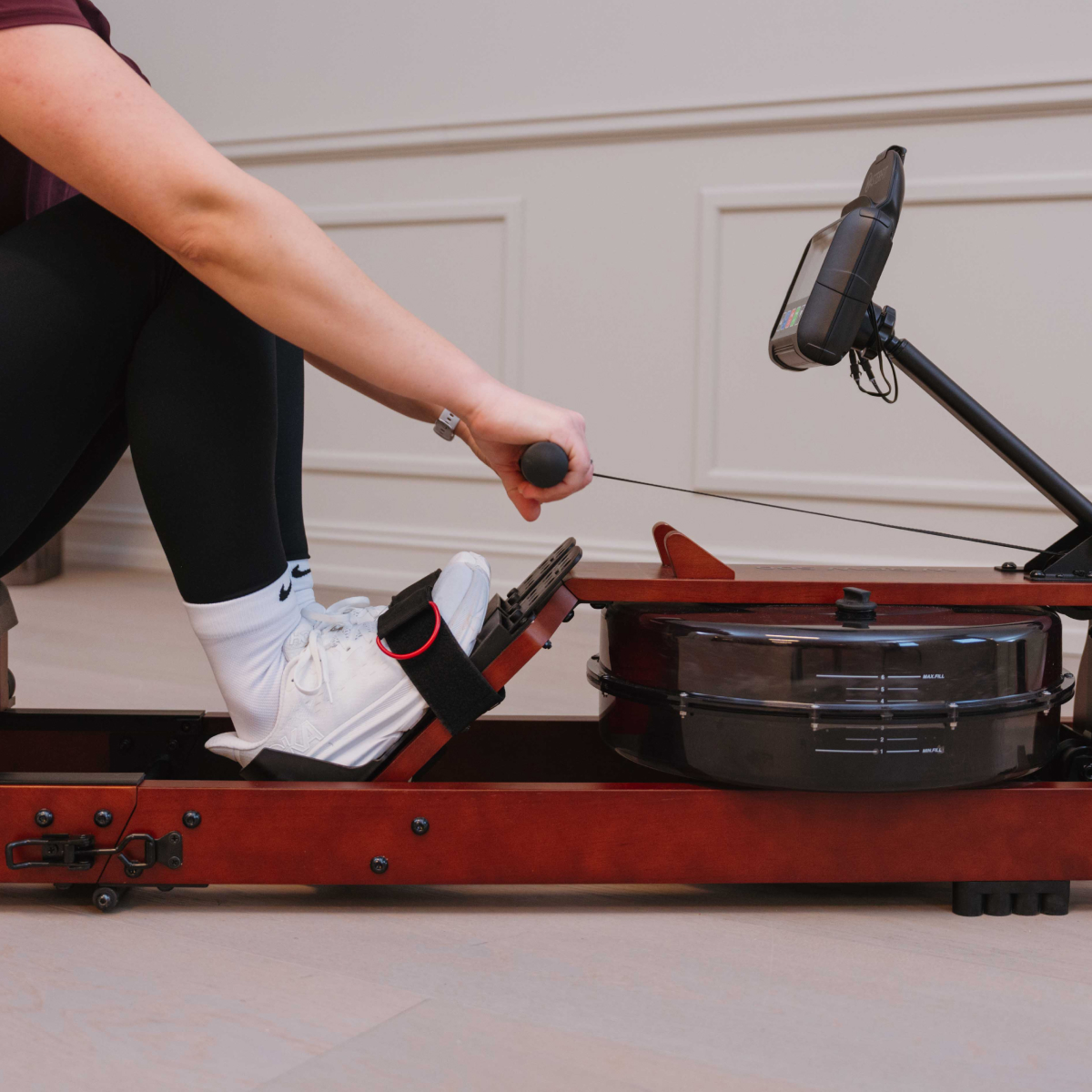 Masterfit W Rower 500 ger dig en realistisk roupplevelse – där vattnet står för motståndet. Varje rotag ger ett naturligt ljud och känsla av riktiga åror i vattnet, samtidigt som du helt själv styr intensiteten. Ju hårdare du ror, desto högre blir motståndet – precis som på vattnet. Det finns inga manuella inställningar – här är det din egen insats som avgör passet.