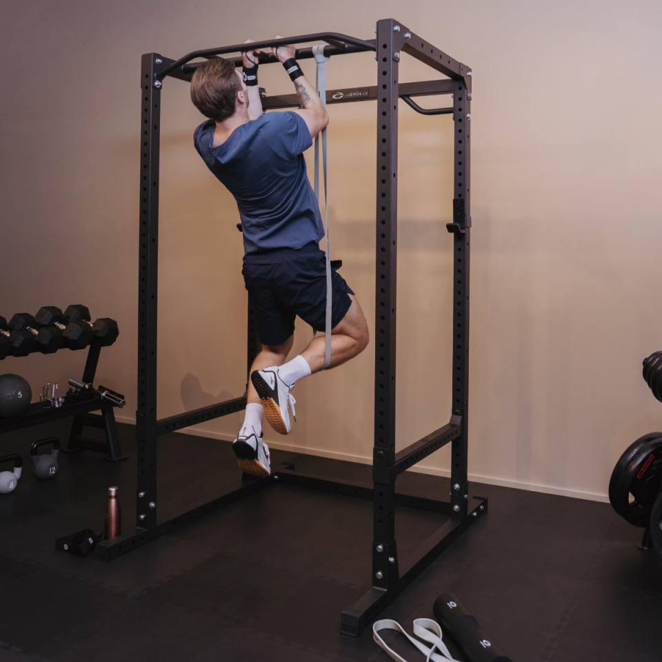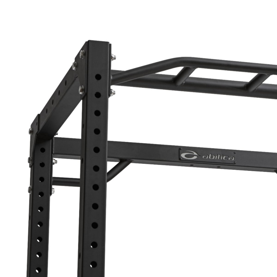 Abilica PowerRack 40 är utrustad med utdragbara handtag med en mängd olika grepp och 2 handtag för att fästa gummiband. Med ett fotavtryck på 124 x 140 cm har du gott om plats inne i racket för att göra alla övningar som antingen görs stående eller som kräver bänk.