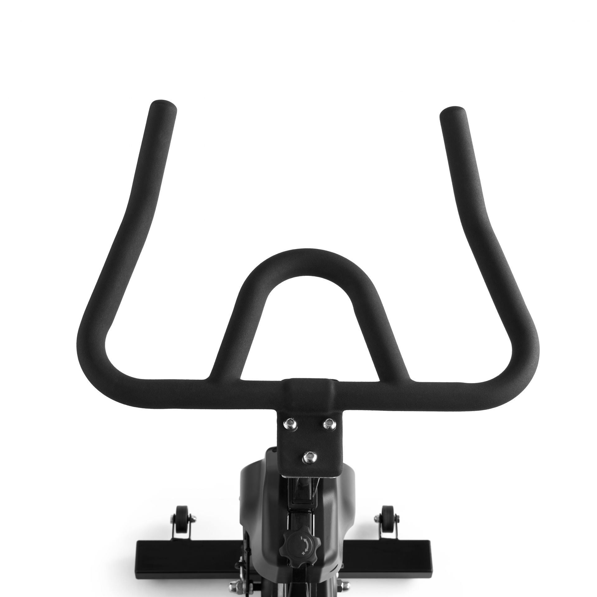 En användarvänlig och platsbesparande spinningcykel med de specifikationer du behöver för att komma i form! Spinningcykeln har kedjedrift och 20 kg svänghjul som ger en mjuk och bra trampning under hela träningspasset. Justerbart styre och säte ger dig en bra ergonomisk sittställning. Levereras med pedaler för vanliga träningsskor och utan dator. Abilica Racer 20 har transporthjul fram så att den lätt kan rullas bort när den inte används. Max användarvikt 120 kg.
