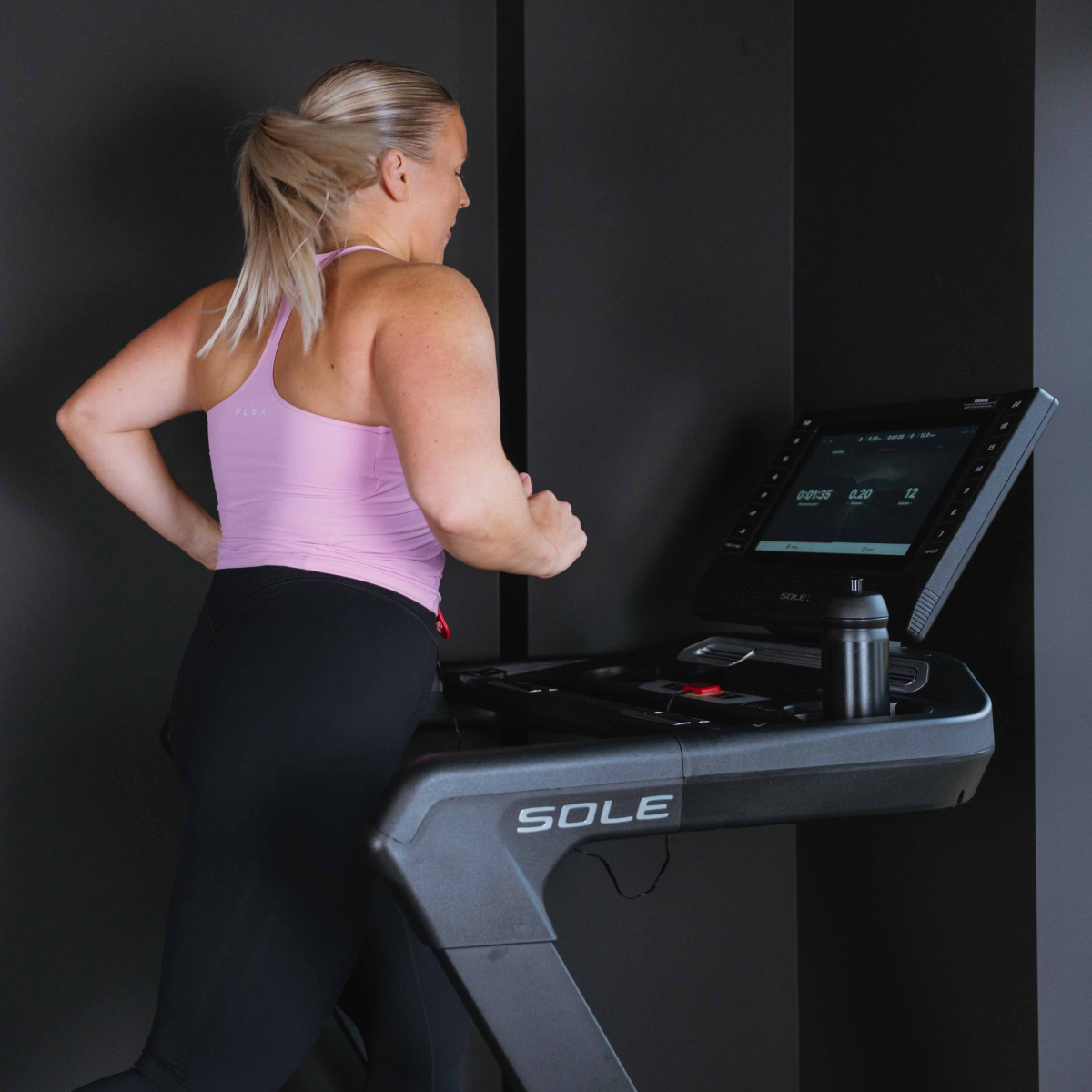 Den är utrustad med standardprogram som erbjuds på alla Sole löpband, men har också möjlighet att spara upp till 12 flera anpassningsbara program, vilket ger användarna flexibilitet och variation i sina träningspass.