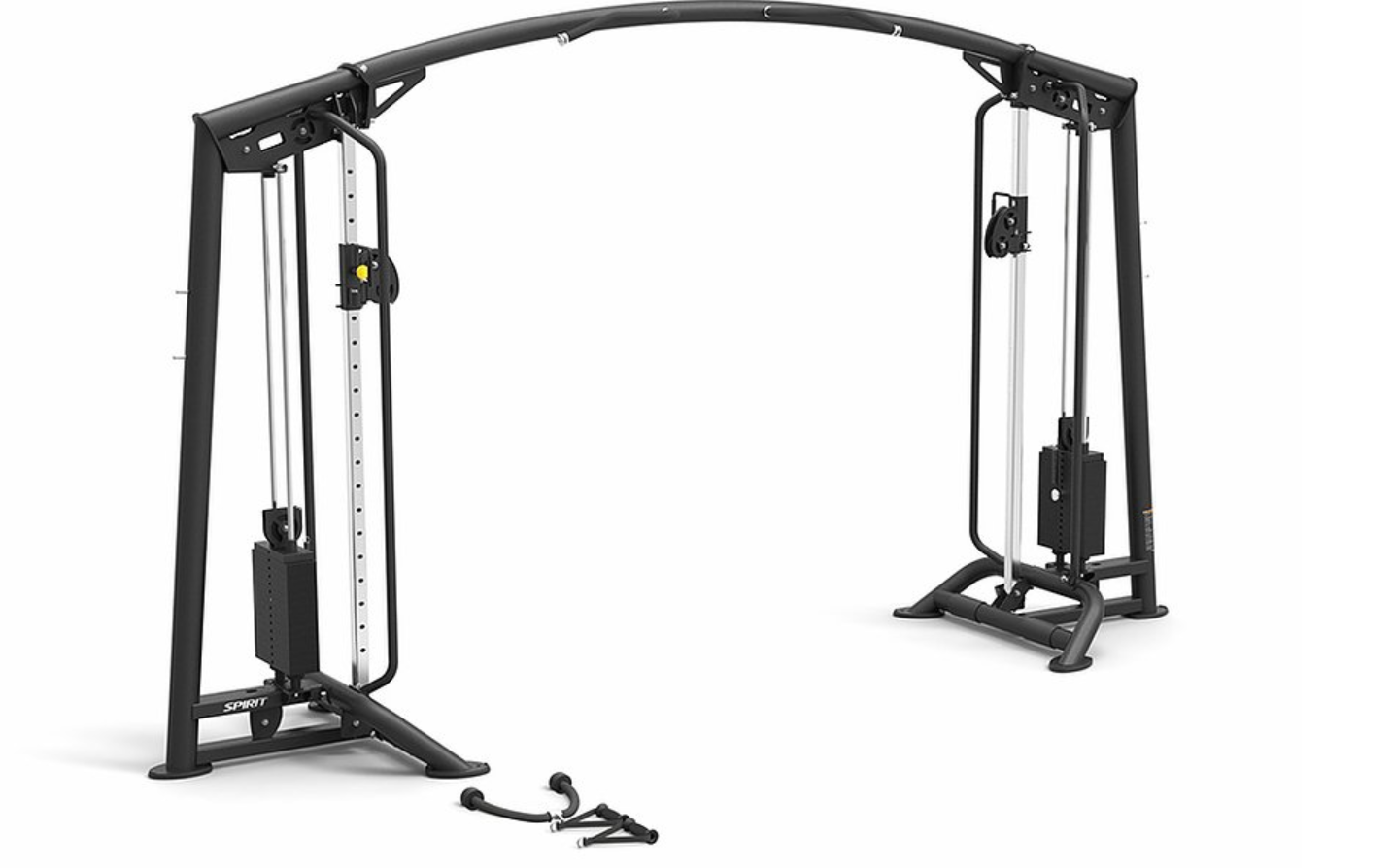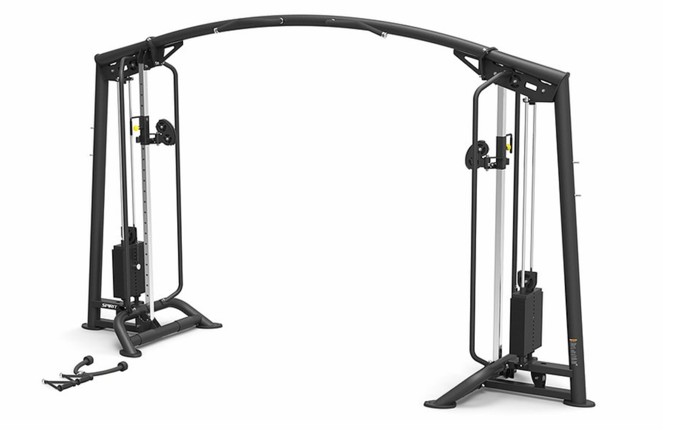 Spirit Cable Crossover har ett remskivaförhållande på 1:1, vilket gör att träningen blir enkel och effektiv. Dess ergonomiskt utformade handtag och mjuka beröringspunkter ger en bekväm känsla även under de mest krävande träningspassen. Maskinen är utrustad med två justerbara remskivor, var och en med en viktstapel på 68 kg, samt en pull-up-stång med perfekt grepp.