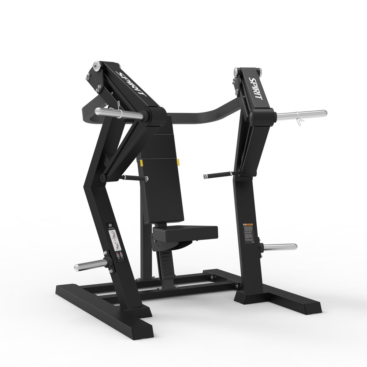 En av maskinerna i denna serie är Spirit Fitness Plate Loaded Chest Press, som är idealisk för att träna överkroppen från en sittande position. Sitsen kan enkelt justeras genom att lyfta och låsa den, vilket underlättar både in- och utstigning. En tydlig markering på ryggstödet hjälper till att positionera bröstet korrekt med handtagen. Den överliggande pivoten är biomekanisk och ger en idealisk pressrörelse.