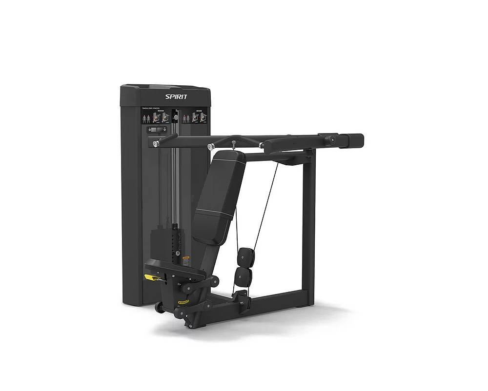 En av maskinerna i serien är Spirit Shoulder Press SP-4303, som är perfekt för att träna axlar och rygg på ett säkert och effektivt sätt. Maskinen har två oberoende armar för unilaterala och bilaterala rörelser för att anpassa träningen efter idrottarens behov. Horisontella och parallella greppalternativ ger variation och passar användare med axelbegränsningar. Sitsen och ryggstödet är fullt justerbara för att stödja ryggraden och hjälpa till att bibehålla rätt hållning under träningen.