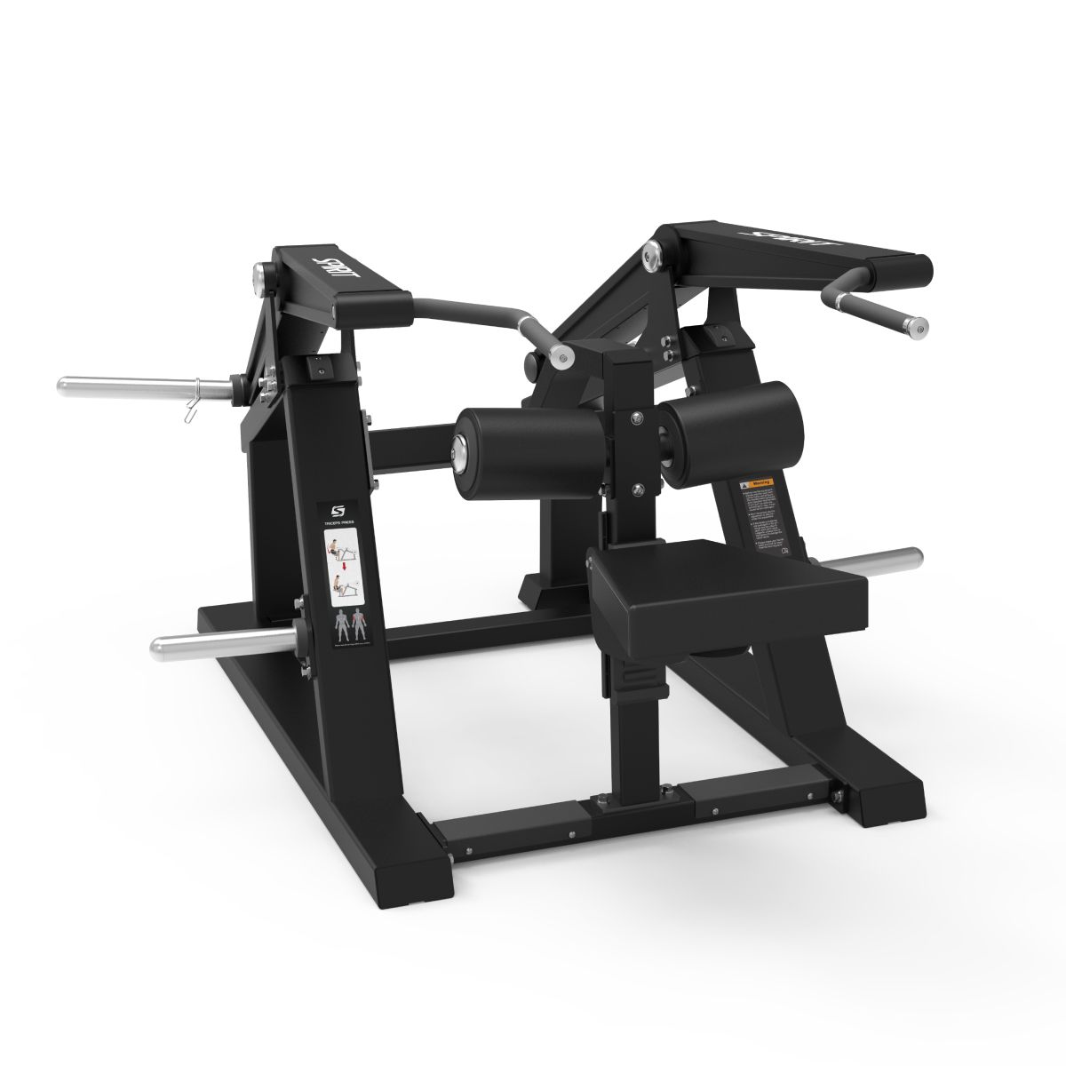 Spirit SP-4514 Plate Load Triceps Extension är speciellt utformad för att stärka triceps genom att isolera och träna nyckelpunkterna i musklerna. Denna imponerande maskin möjliggör både ensidiga och bilaterala rörelser, vilket minskar eventuella asymmetrier i musklerna. Sitsen kan enkelt justeras med hjälp av ett lyft- och låssystem, vilket stabiliserar underkroppen för en säker och effektiv träning.